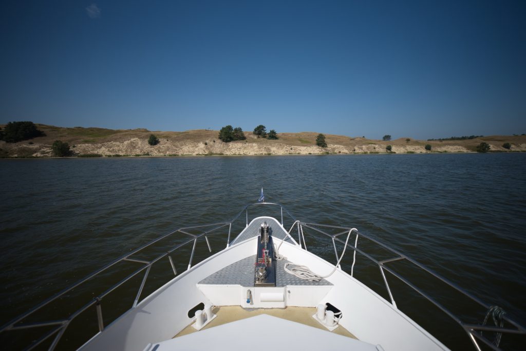 Pirmiausia iš Klaipėdos keliavome į Juodkrantę – visiems gerai žinomą kurortą – žvejų kaimelį Kuršių nerijoje. Plaukimas į vieną pusę truko vos 2 valandas, o ir pasižiūrėti buvo į ką – Klaipėdos uosto akvatorijos urbanistinius vaizdus bemat pakeitė Kuršių marių panorama ir vandenyje drąsiai besimaudantys kormoranai.
